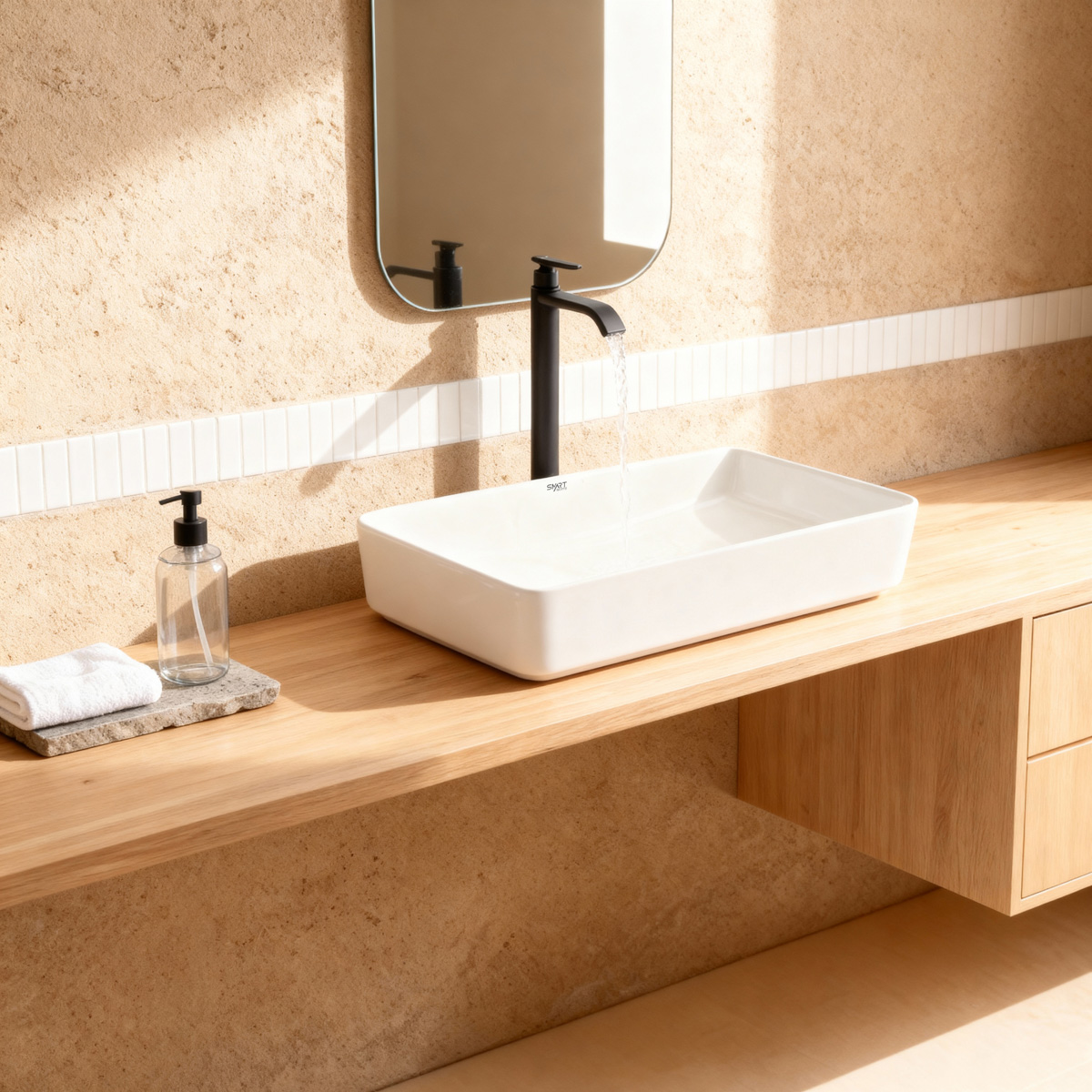 Decore seu banheiro com este kit de sobrepor contendo cuba, torneira e válvula que não é apenas uma tendência no mundo do desenho, mas também lhe dará espaço suficiente em seus lados para colocar itens de higiene pessoal.