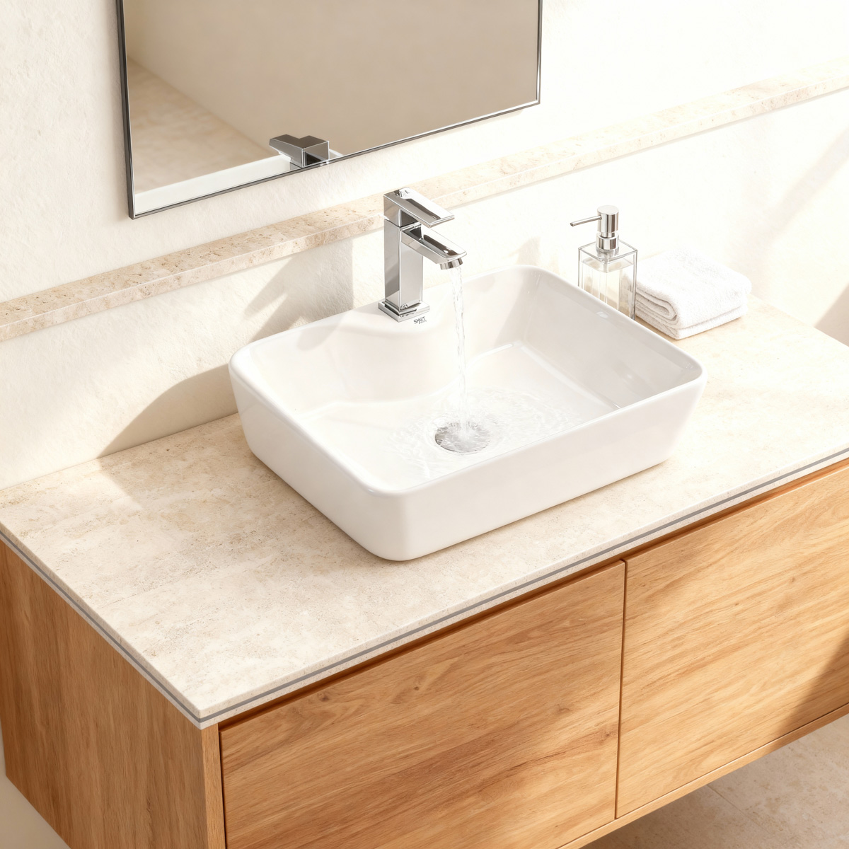 A cuba é elegante e moderna, com um design atemporal que se adapta a qualquer ambiente. A torneira, com seu acabamento cromado, traz um toque de sofisticação ao banheiro. E a válvula, feita em aço de alta resistência, garante a durabilidade e eficiência do conjunto.